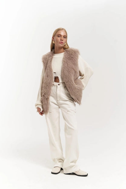 Weste aus Kunstfell - braun